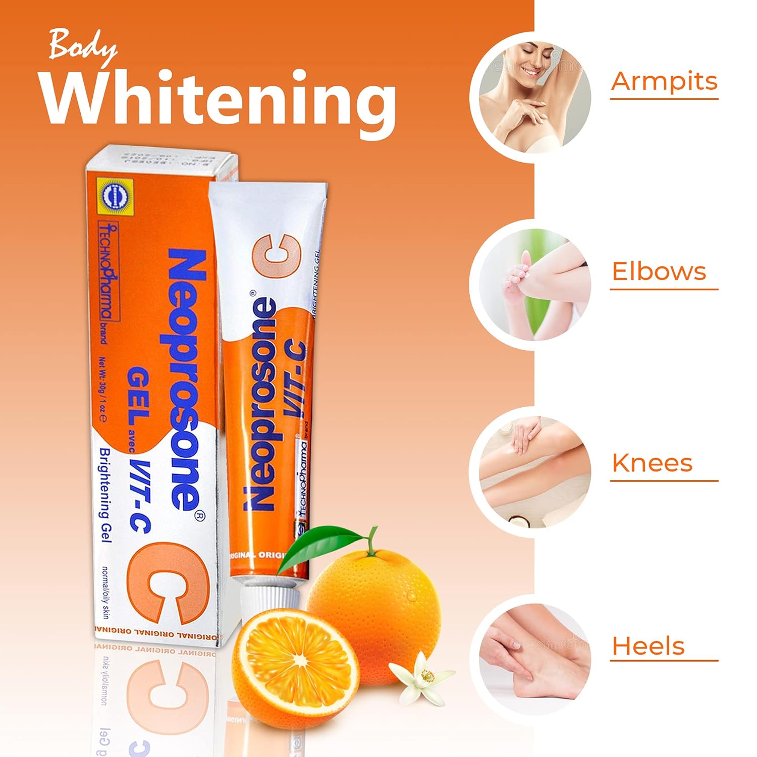 Neoprosone, Vitamin C Gel - 1 Fl oz / 30 ml - Brightening Gel Cream for Neck, Face, Body, Armpit, Hands - For Women and Men, with Alpha Arbutin