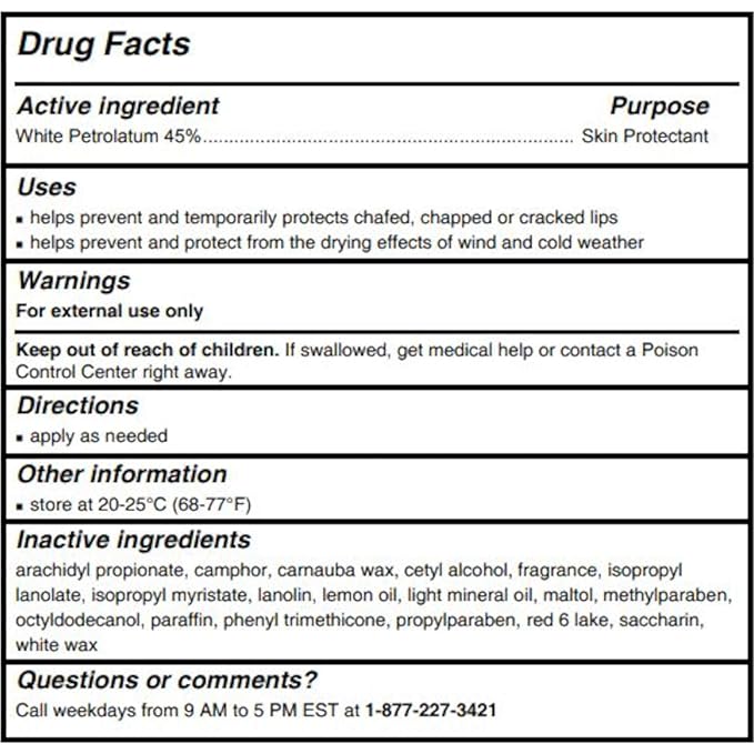 - Helps prevent and temporarily protects chafed, chapped or cracked lips