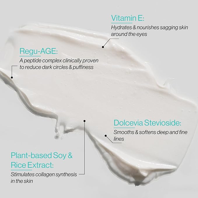 - PLUMPING PEPTIDES. Prettify and protect precious peepers with this rich and hydrating anti aging eye cream with skin saving, plant based soy, and rice extract to stimulate the skinβs support system, supporting collagen synthesis on a molecular level.