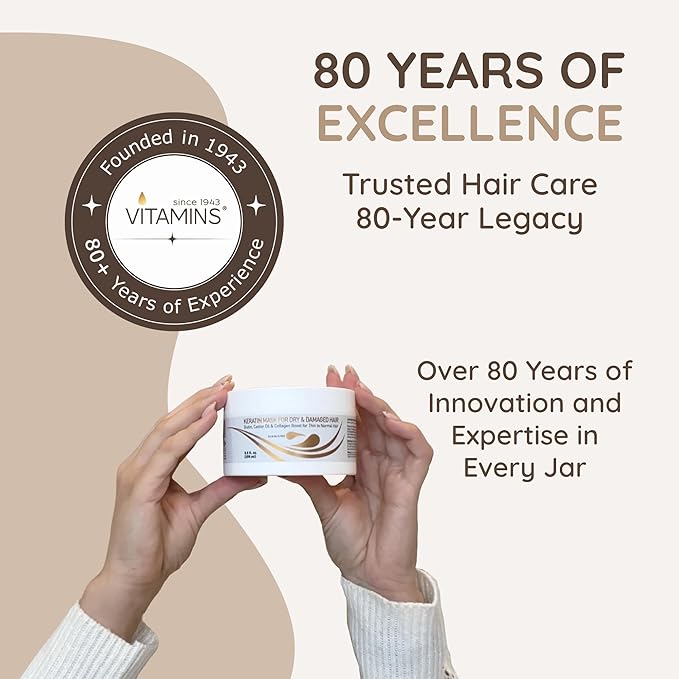 VITAMINS hair cosmetics Keratin Hair Mask - Deep Repair Conditioner with Biotin & Castor Oil - For Damaged, Dry, Curly, Straight, Thin & Fine Hair - Intense Collagen Protein Treatment