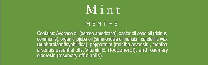 - Ingredients: Avocado oil, organic jojoba oil, castor oil, candelilla wax, Vitamin E, steam distilled essential oils, and rosemary oleoresin. Pure ingredients that are protective, healing, and soothing, for lips, skin, or cuticles.