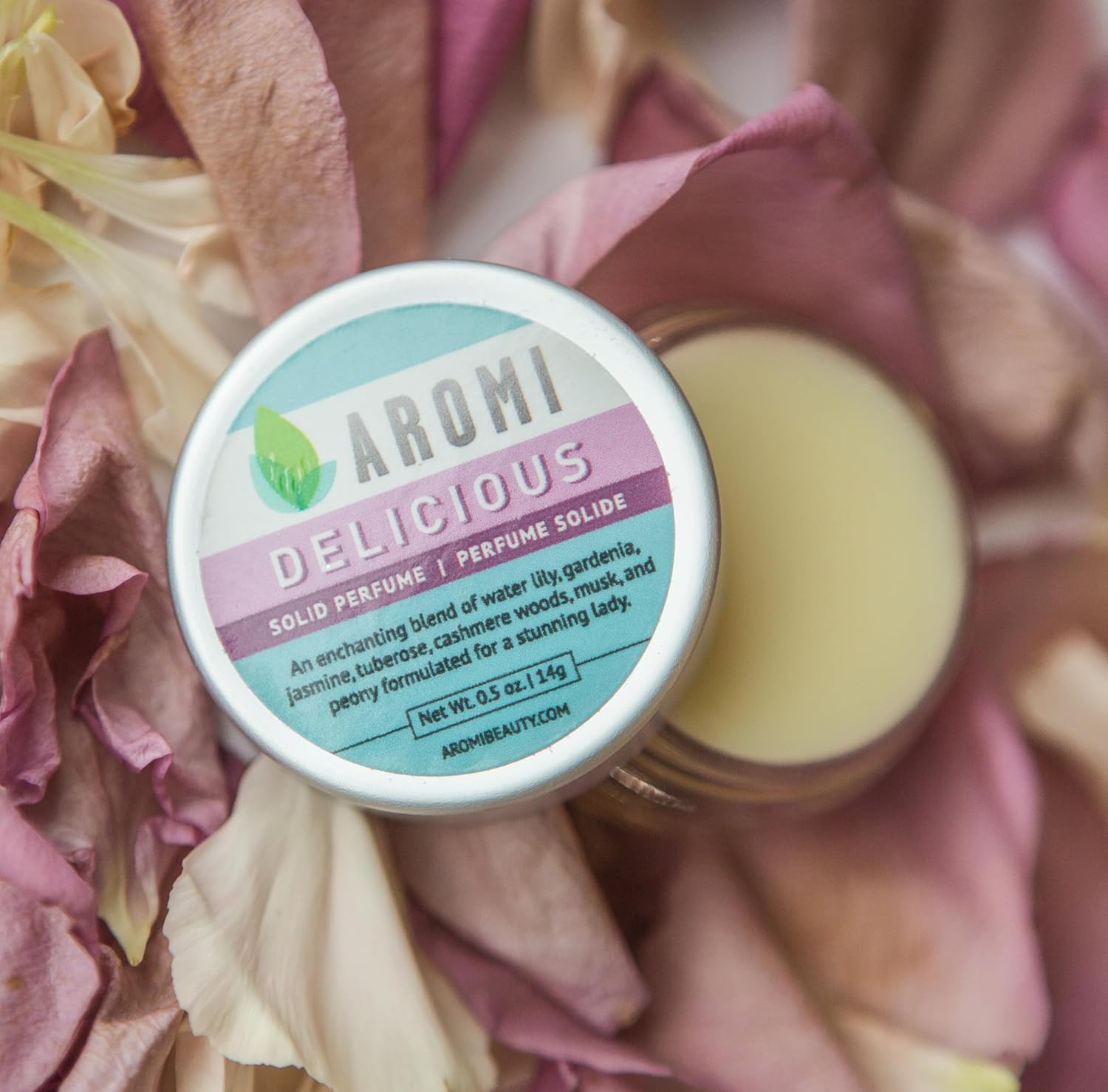 Aromi Delicious Solid Perfume | Honeysuckle, Tuberose, and Gardenia Fragrance, Vegan, Cruelty-free, Wax Scent, Travel, Women's Gift, Handmade (Delicious)