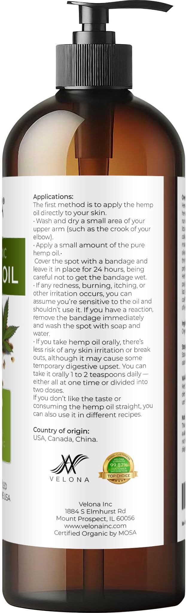 velona Hemp Seed Oil USDA Certified Organic - 16 Fl Oz | 100% Pure and Natural Carrier Oil | Unrefined, Cold Pressed | Hair, Body, Face & Skin Care