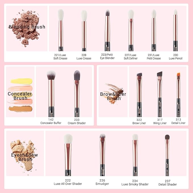 - This Jessup makeup brushes set contains 15 pcs eye makeup brushes which can be used as eyelash brush,eyeshadow brush,blending brush,concealer, and angled brush, meets all your needs for a eye brush set. perfect for professional artists and makeup beginners