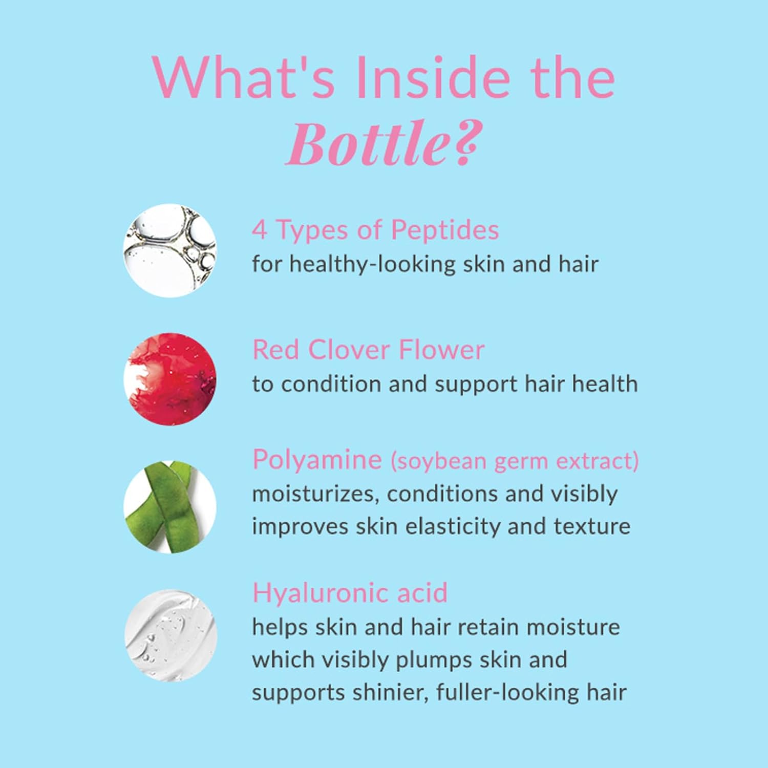 - Special Ingredients : 4 Types of Peptides: Support healthy-looking skin and hair., Hyaluronic Acid: Helps nourish dry and damaged lashes with hydrating properties to help skin and hair retain moisture. Visibly plumps skin and supports shinier, fuller-looking hair., Polyamine (soybean germ extract): Helps moisturize, condition and visibly improve skin elasticity and texture., Red Clover Flower Extract: Powerful antioxidant with a high content of isoflavones that is known to support hair health. 4 Types of Peptides: Support healthy-looking skin and hair., Hyaluronic Acid: Helps nourish dry and damaged lashes with hydrating properties to help skin and hair retain moisture. Visibly plumps skin and supports shinier, fuller-lo⦠See more