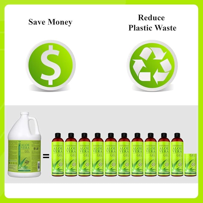 Seven Minerals Organic Aloe Vera Gel from freshly cut 100% Pure Aloe - 1 Gallon - HighestQuality, Texas grown, Vegan, Unscented - For Face, Skin, Hair, Sunburn Relief - Bulk DIY (128 Fl Oz)