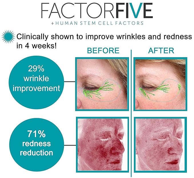 - Biotechnology in a Bottle: All FACTORFIVE products utilize ethically-sourced, adipose-derived adult human stem cell growth factors to save you valuable time on your skincare routine and fight signs of aging-- fine lines and wrinkles, sun spots, tightness, thickness, texture, and more.