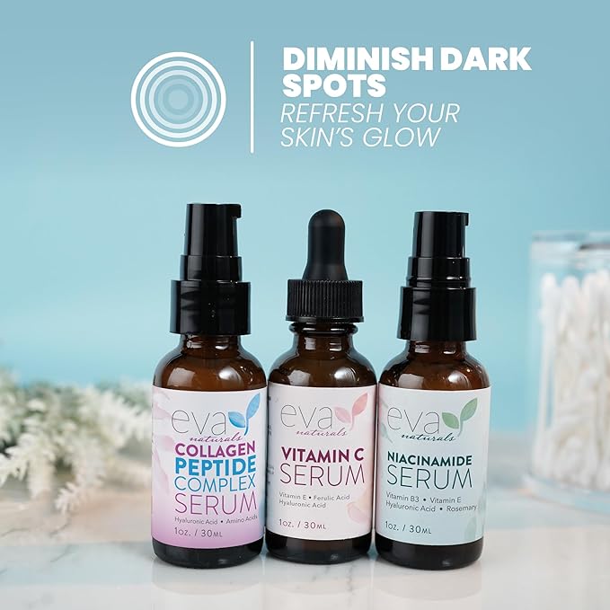 Eva Naturals Firm & Glow Serum Bundle – Vitamin C, Peptide & Niacinamide Serums – Anti-Aging Face Serum Set for Wrinkles, Glow, Pores, Hydration – Collagen Boosting Skin Care Routine