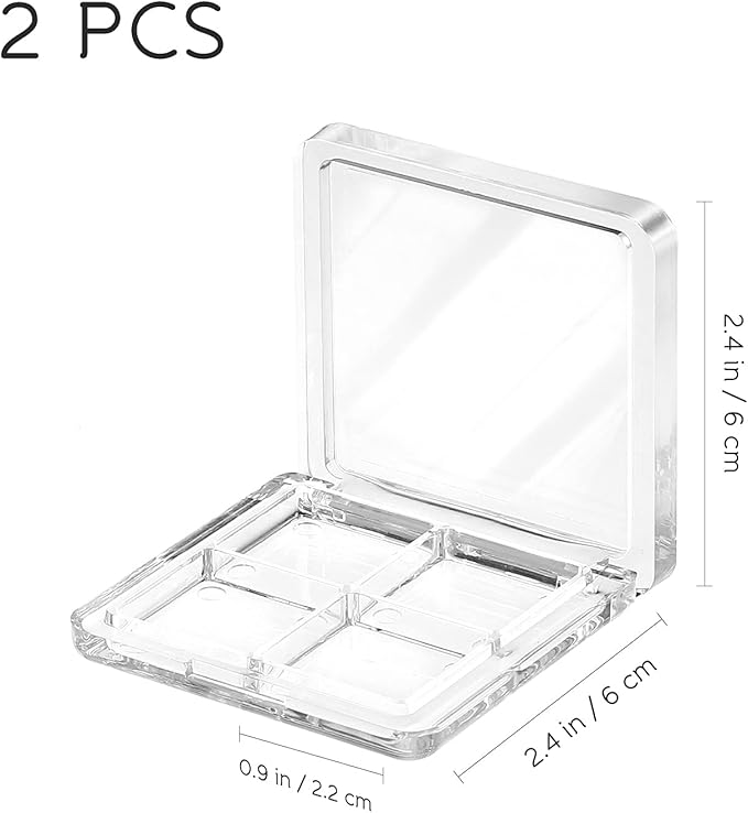- Refillable Eyeshadow Storage Case - Designed with 4 grids to store different colors, simple but delicate, perfectly sealed to prevent unnecessary leakage. Made from durable and transparent material, these empty boxes are not only sturdy but also allow for easy visibility of colors. The clear design ensures that you can easily identify the shades of your eyeshadows without having to open the box