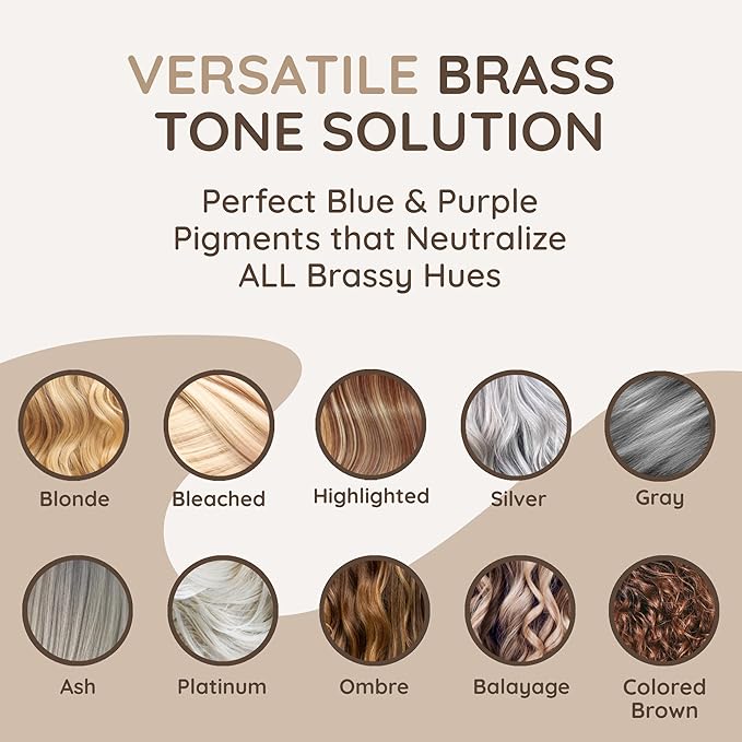 - 2 In 1 Color Depositing Purple Conditioner & Toning Hair Mask: Removes Brassy Orange Yellow Tones. Intense Pigment Neutralizes Brassiness. Lightener Color Corrector for Bleached, Brunette, Ombre & Balayage