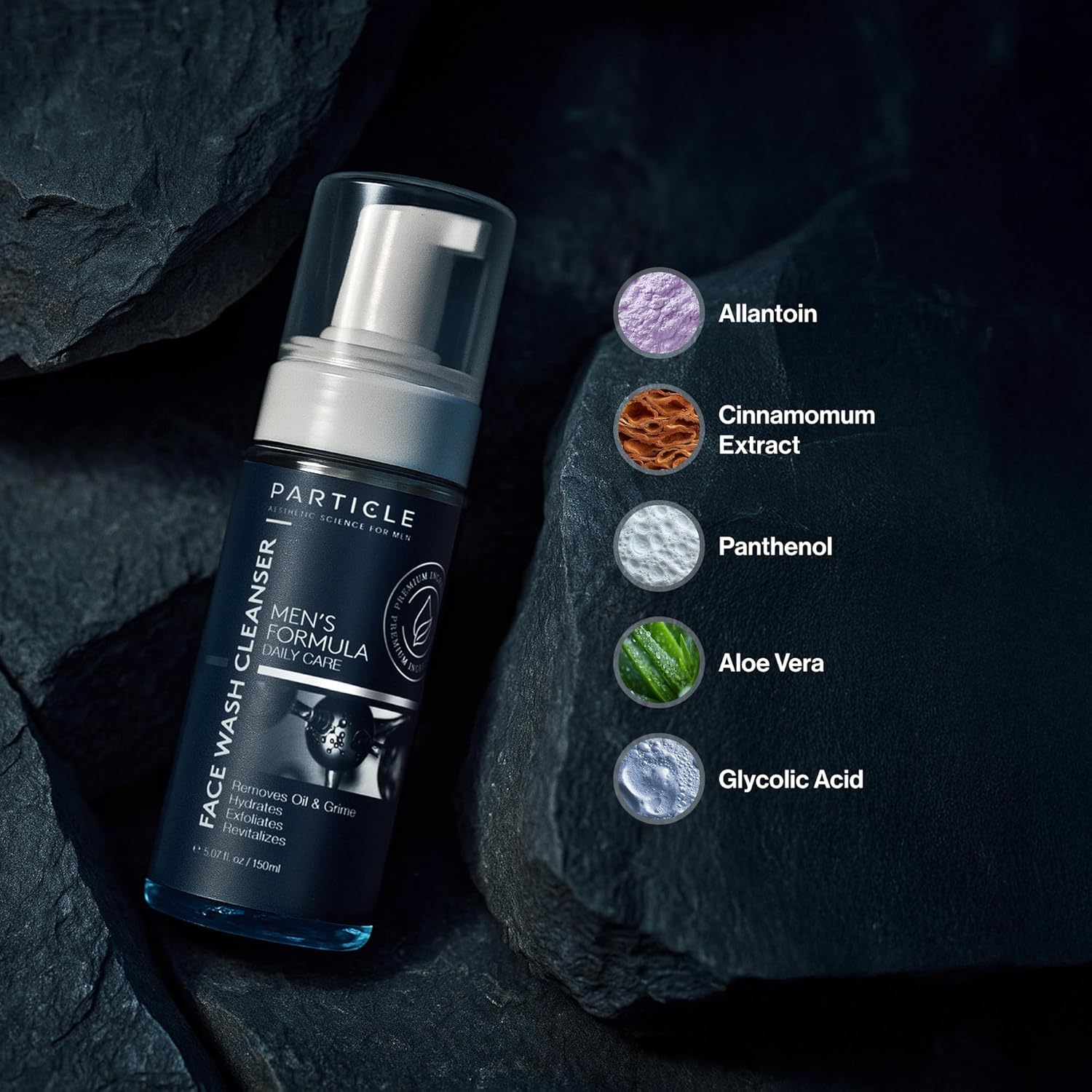 - Multi Benefit Face Cleanser for Men: Particle Face Wash is an easy upgrade from basic soaps, crafted as a complete men’s face wash and skin care step in one. The foaming cleanser removes oil, dirt, and impurities while leaving skin feeling refreshed. Designed for everyday use, it supports a clean finish that fits into any grooming routine.