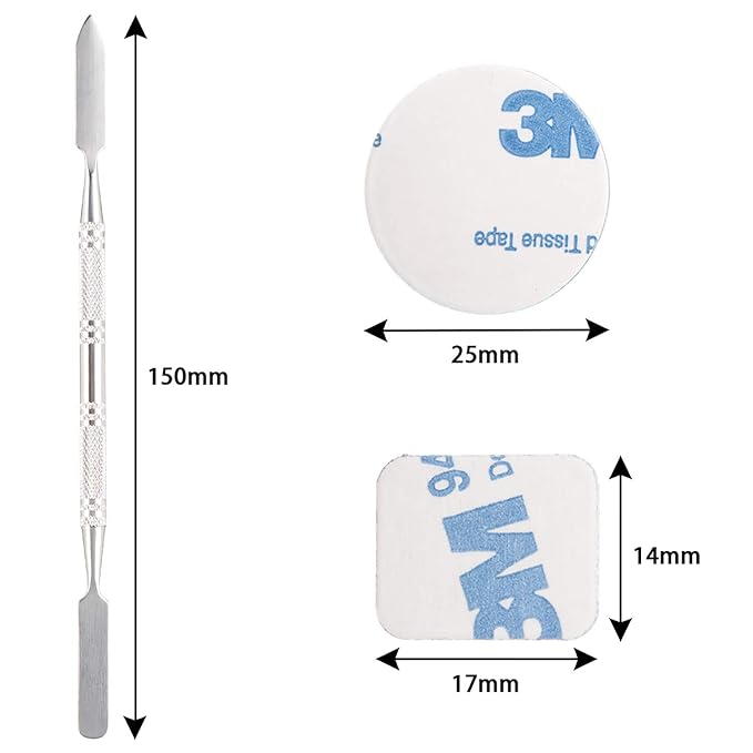 - It including 50pcs round (diameter:25mm) metal stickers,50pcs square(17*14mm) metal stickers and 1pcs depotting spatula.