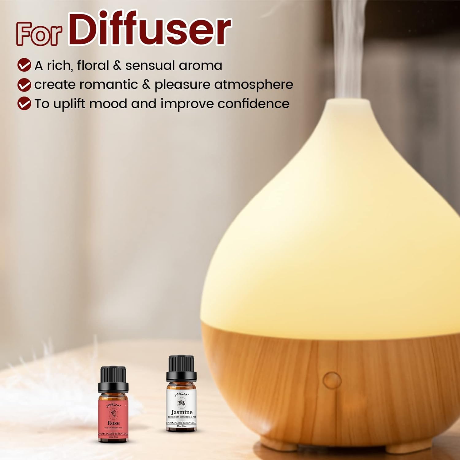 - Rose pure oil extracted from rose, unique rose fragrance create a comfortable, sweet, romantic atmosphere.