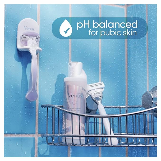Gillette Venus for Pubic Hair and Skin, 1 Razor Handle + 2 Blade Refills, 2-in-1 Cleanser + Shave Gel and Daily Soothing Serum