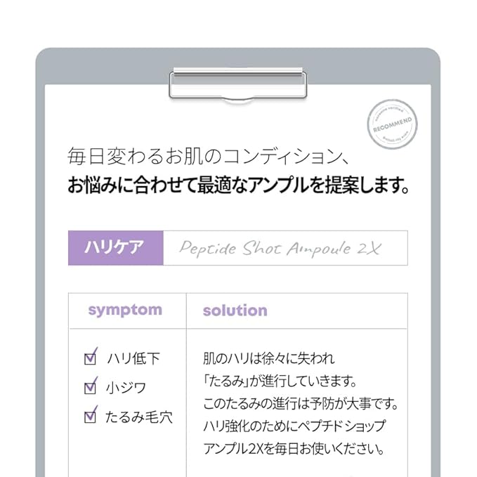 - 20 TIMES MORE CONCENTRATED PEPTIDES: Coreana Peptide Shot Serum is enriched with peptide threads that melt between the cracks of the skin. This 2x face serum helps restore the skin's elasticity by minimizing the appearance of wrinkles, fine lines, and aging spots. It contains 20 times more peptides than original ample:n peptide serum.