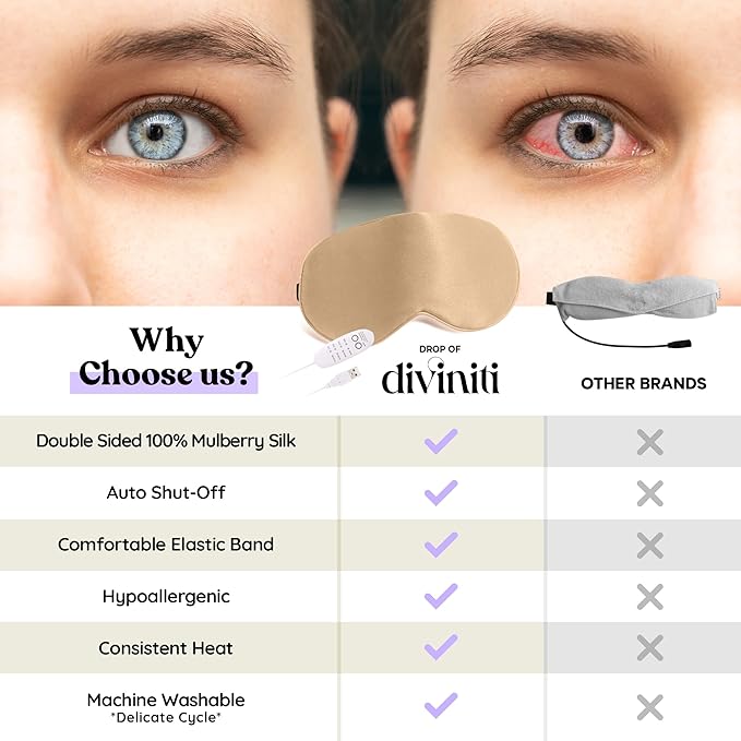 - 🔥 Adjustable Heat & Timer – An easy to use fully adjustable warm eye compress mask for dry eyes. From 100°F to 130°F. Continuous soothing warmth or timing modes of 15, 30 or 60 minutes. Enjoy the customization of this eye warmer for dry eyes.