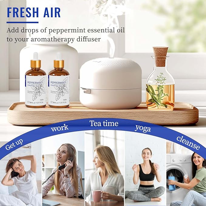 - Refreshing Comfort: Transform your space with just 3-5 drops of our refreshing mint essential oil in your diffuser