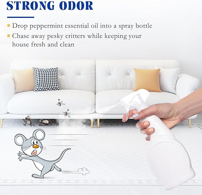 - Repel Small Animals: Mix peppermint oil with water in a spray bottle and spray around the house, Garden, Porch, And window sills