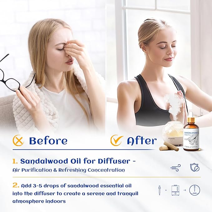 HIQILI Sandalwood Essential Oils 1 Fl Oz, 100% Pure Natural Therapeutic Grade for Skin, Diffuser, Perfume, Candle Soap Making, Includes Premium Quality Glass Dropper