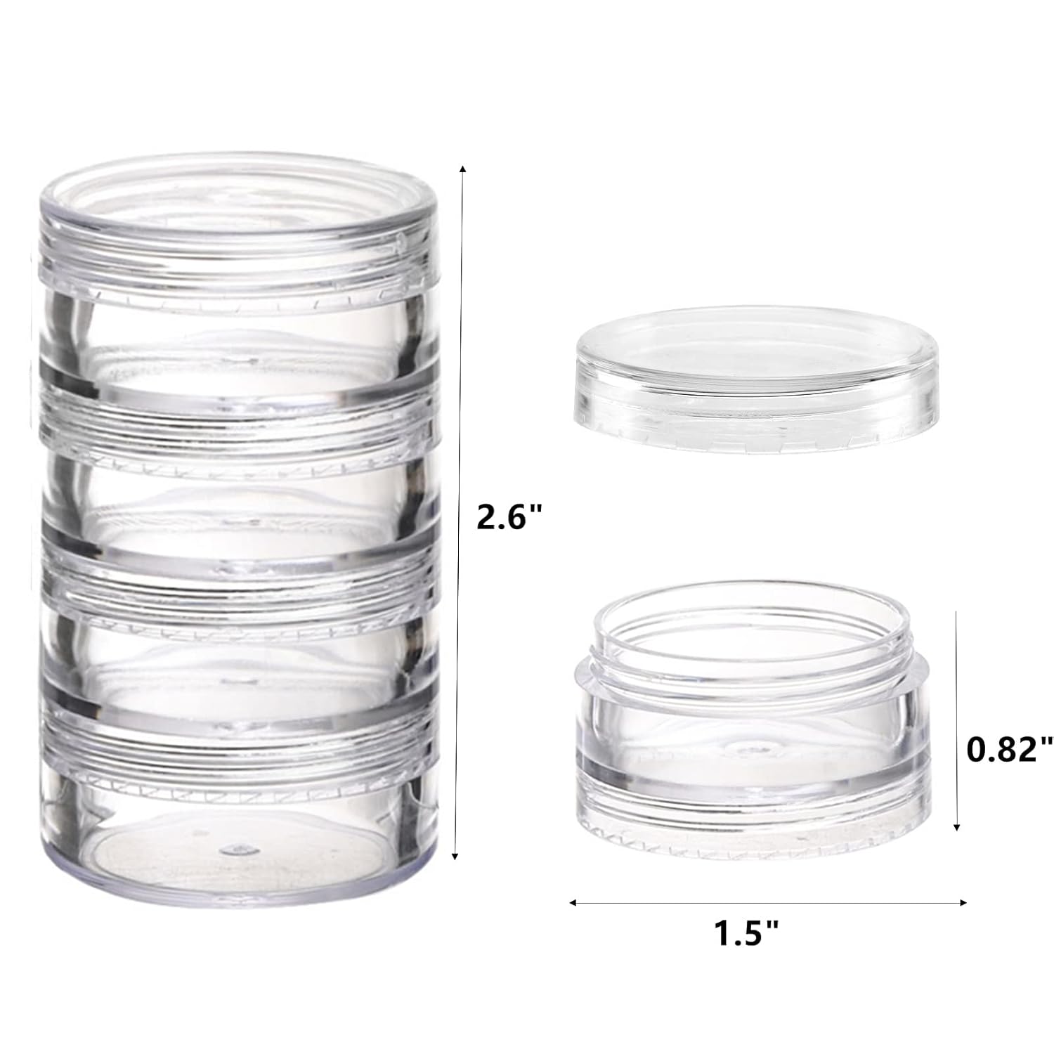 - Package Include: 5 Pack of 4-pot stack in Clear. 10 grams in each jar and 1 top lid is provided for every 4-pot stack. Plus additional pre-written label;lotion/day cream/shampoo/facial cleaser,ect