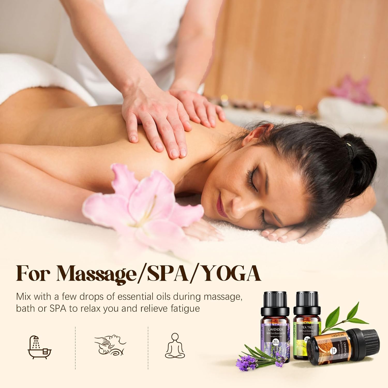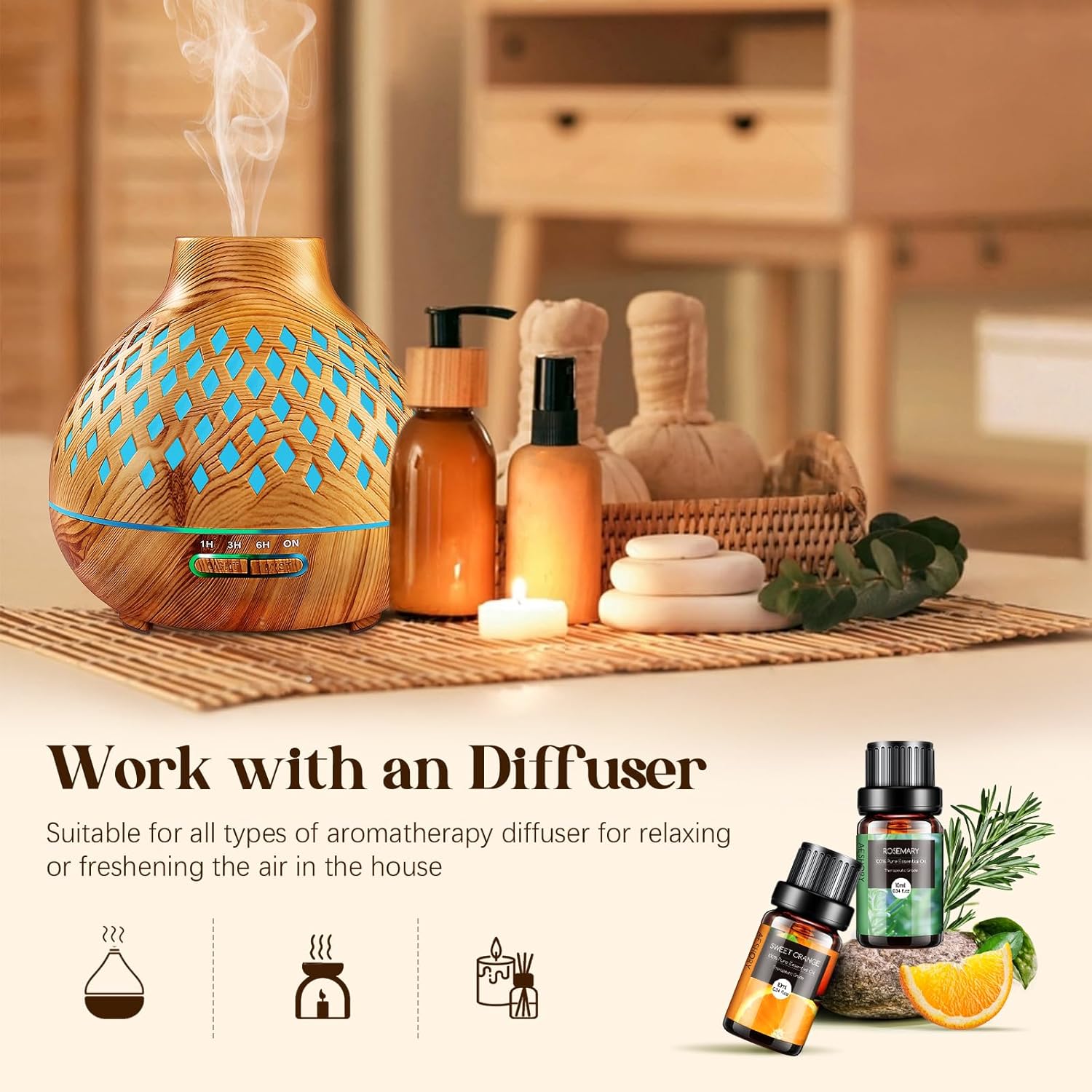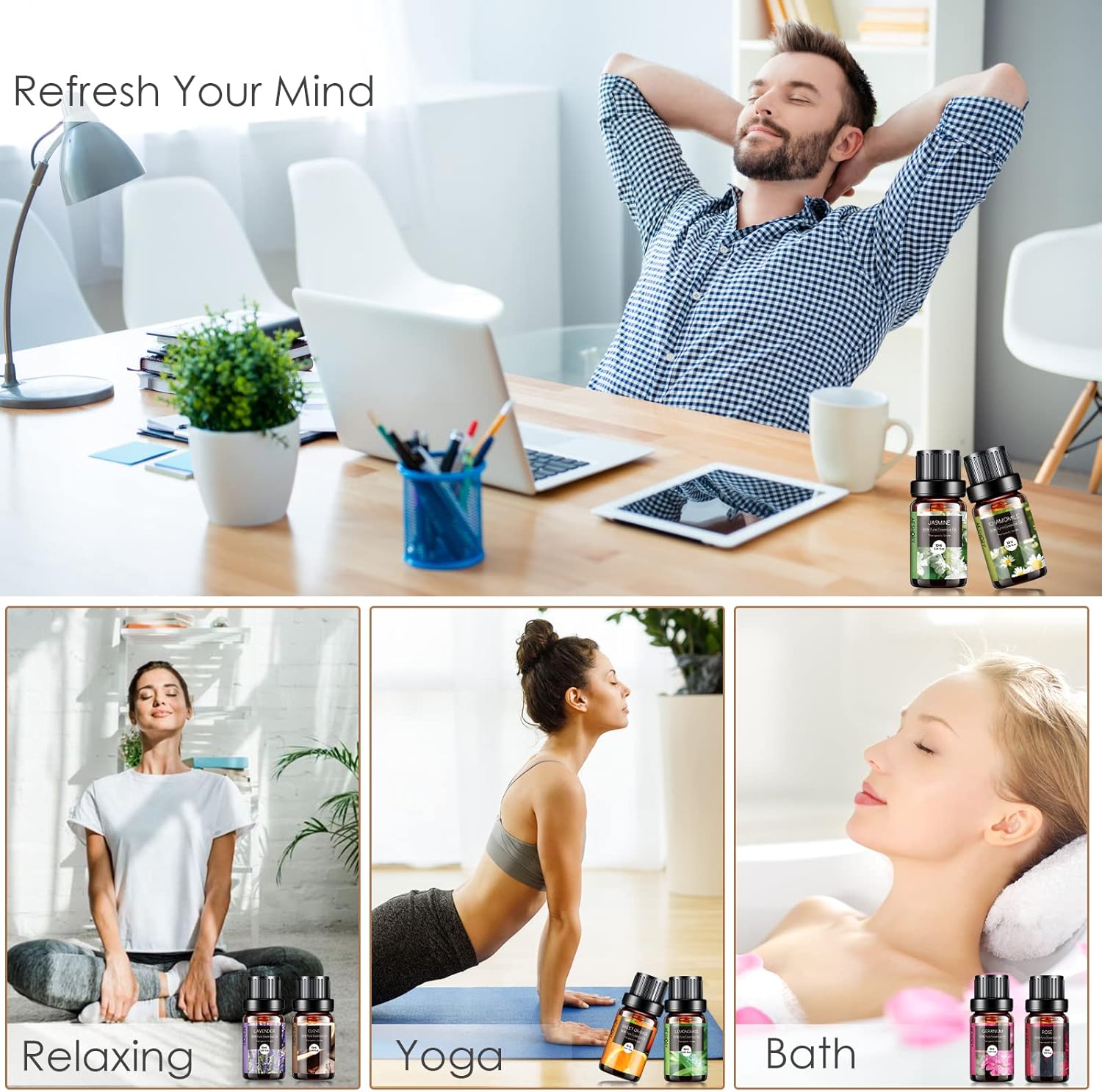 - πMulti-Use: Our essential oils always adopt rigorous quality control standards. Simply add a few drops to any aromatherapy diffuser and fill your entire room with that aroma. And suitable for humidifier, aromatherapy, steam inhalations, hair or skin care, massage, bath, saunas, air freshening, home fragrance (bedroom, living room, bathroom, study room), office (workstation, conference room), yoga room and spa, etc.