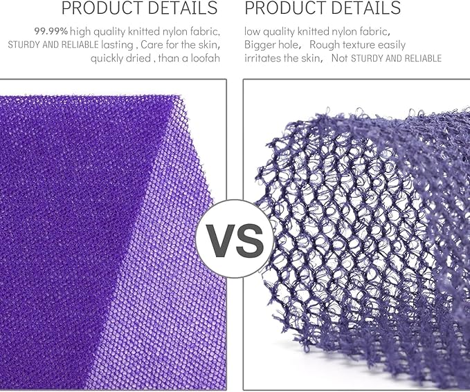 - 【More efficient cleaning】The exfoliating body net is rougher than a ordinary bathing cloth, but soft enough for daily body cleansing.easy for removing dead skin, dirt, oil, and eliminating impurities, unclogging pores, suitable for women and men of most ages to use