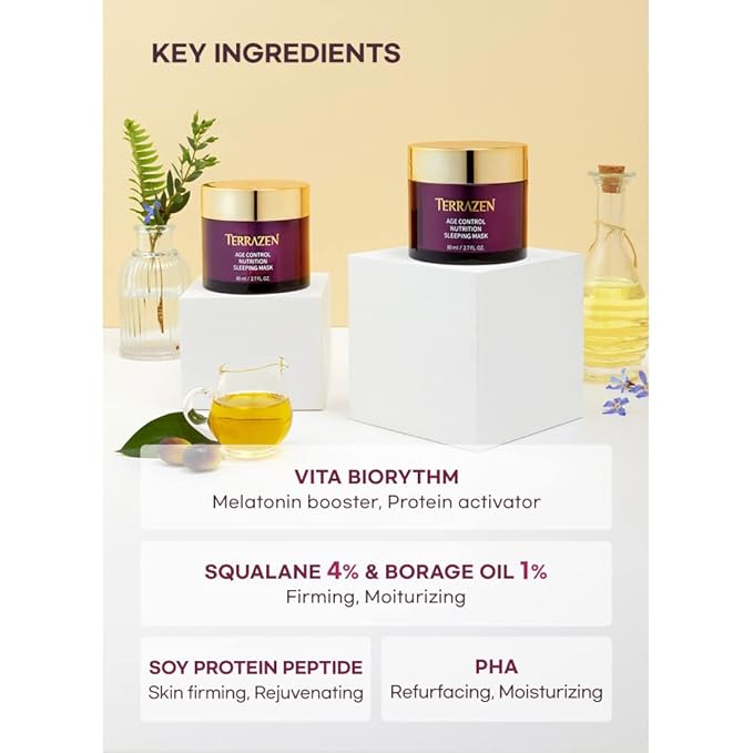 Age Control Nutrition Sleeping Mask, 2.70 fl.oz.(80g), Age Control Overnight Face Mask with PHA, PEPTIDE, Plant Squalane, Hydrating, Firming, Glowing Skin