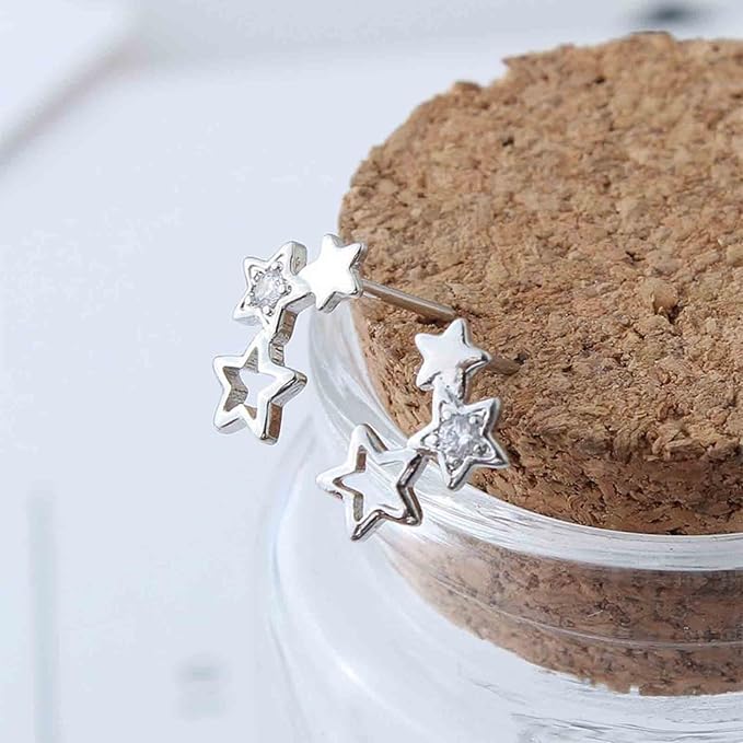 Boho Rhinestone Star Ear Climber Earrings Silver Cluster Star Earrings Minimal Crawler Earrings Vintage Studs Earrings Jewelry for Women and Girls