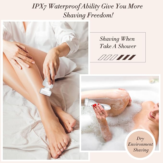 - 【Safe Dry & Wet Use with IPX7 Waterproof】Women razors for shaving is washable and cleaned in water under running water. IPX7 waterproof makes the electric trimmer convenient and safe to use even in a bath or shower.