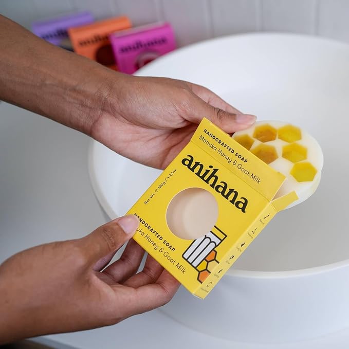 ANIHANA Handcrafted Natural Soap with Coconut Oil, Gentle Cleansing, Paraben Free, Refreshing Manuka Honey & Goat Milk Scent, 4.23 oz