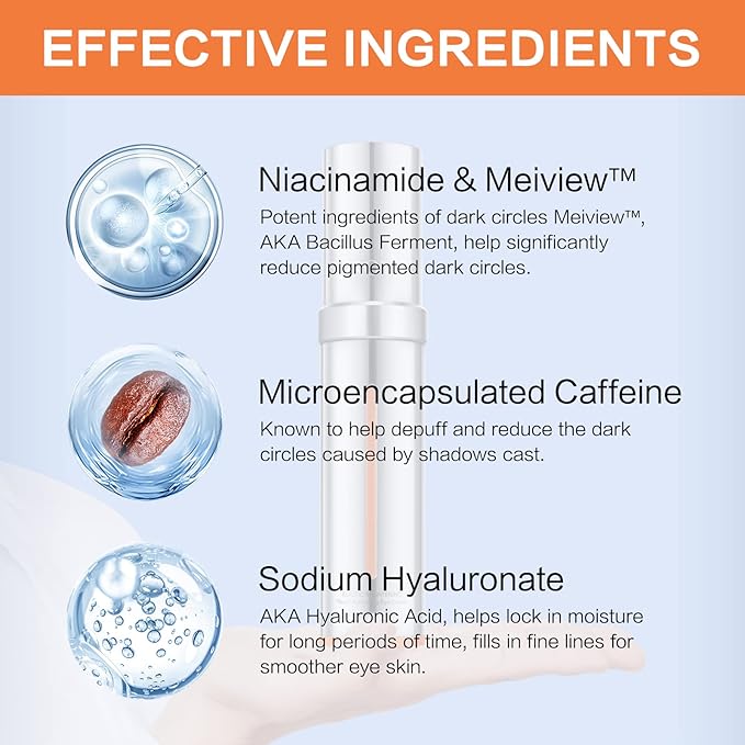 - Main Ingredients: Formulated with Niacinamide, Microencapsulated Caffeine, and Sodium Hyaluronate, highly effective to brighten the dull eye area, revitalize and strengthen the skin around eyes.