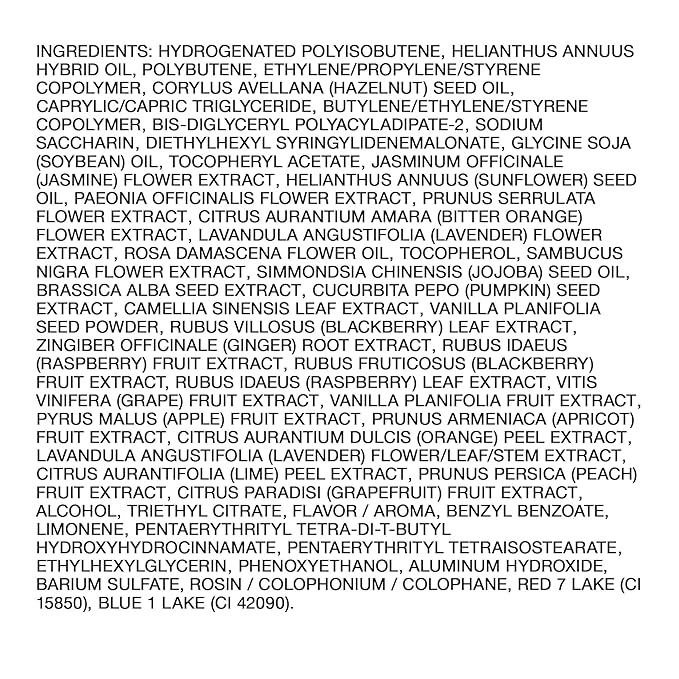 - BENEFITS: Infused with fruit extracts and vitamin E to lock in moisture while softening and nourishing lips. The non-sticky formula makes it ultra comfortable to wear all-day