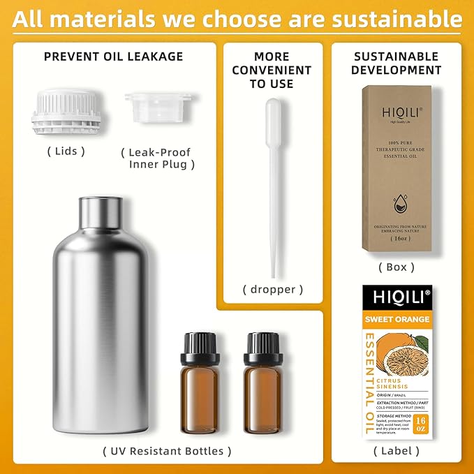 HIQILI 16 Fl Oz Orange Essential Oil, Pure and Natural for Diffuser, Skin - 500ML