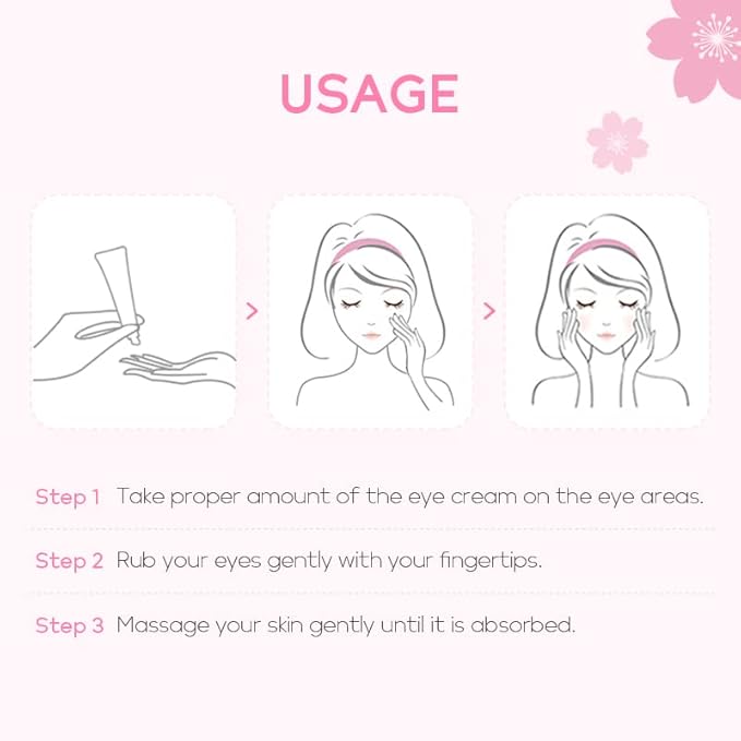 - [ ALL-IN-ONE EYE CREAM ] The cherry blossom eye cream can address the most common frustrations associated with aging skin around the eyes, dark circles, puffiness, loss of firmness, sagging skin, and dryness. Features premium applicator tip for gentle massage during the application, promoting absorption.