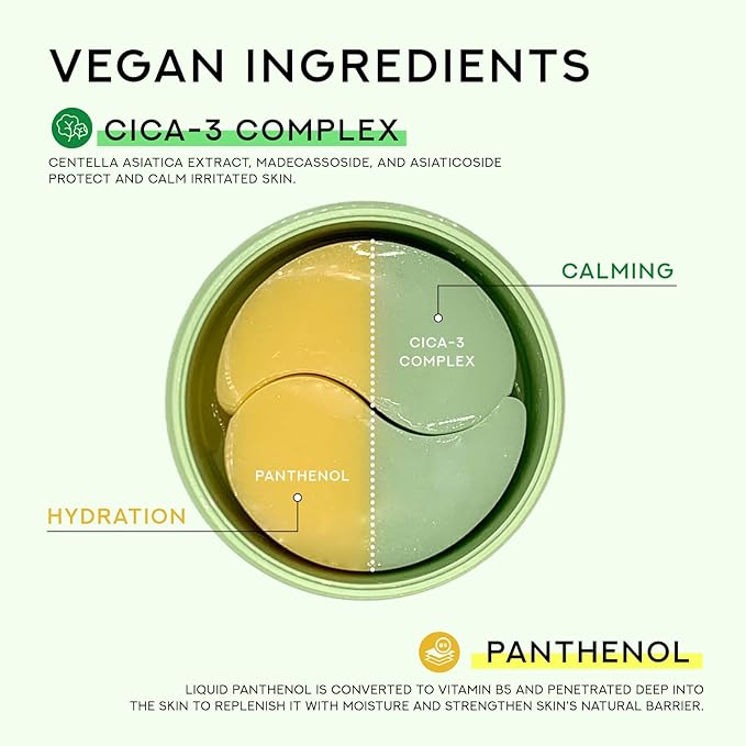 Gentle Relief Under Eye Patches | Calming Eye Treatment Gel Masks With 3-Cica Complex & Panthenol | Under Eye Masks For Dark Circles and Puffiness, Under Eye Bags, Wrinkle Care, Men and Women