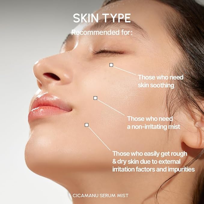 Parnell Cicamanu Serum Mist - Centella Asiatica, Hyaluronic Acid, Ceramide, LHA, Balancing Oil, Moisturizing and Soothing for Radiant Skin (1.69 Fl Oz / 50ml)