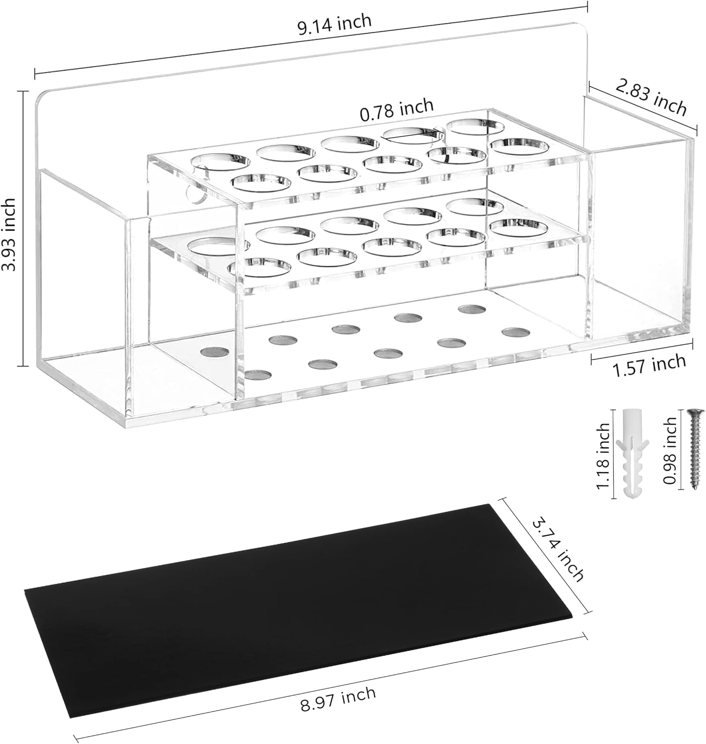- PATENT PENDING: 𝗣𝗔𝗧𝗘𝗡𝗧 𝗣𝗘𝗡𝗗𝗜𝗡𝗚.This 2-tier design ( Patent Pending ) can ensure that the holes in the bottom tray are just right for holding the tips of standard dry erase markers in place. If you don't want to install it on the wall, it can also be placed on the table top.