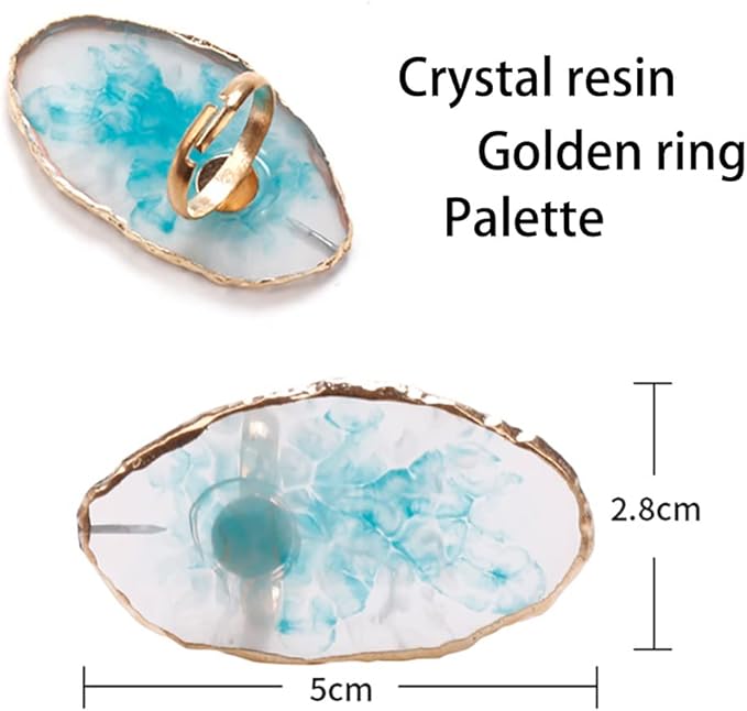 - Package includes: there are 3 pieces resin nail art palettes in the package, 1piece big resin palette with golden edge,2 pieces finger ring nail holder(blue&pink)