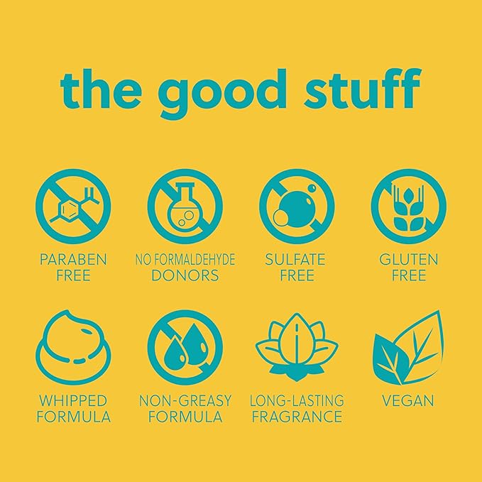 - Rich, whipped body butter that delivers long-lasting moisture without feeling greasy
