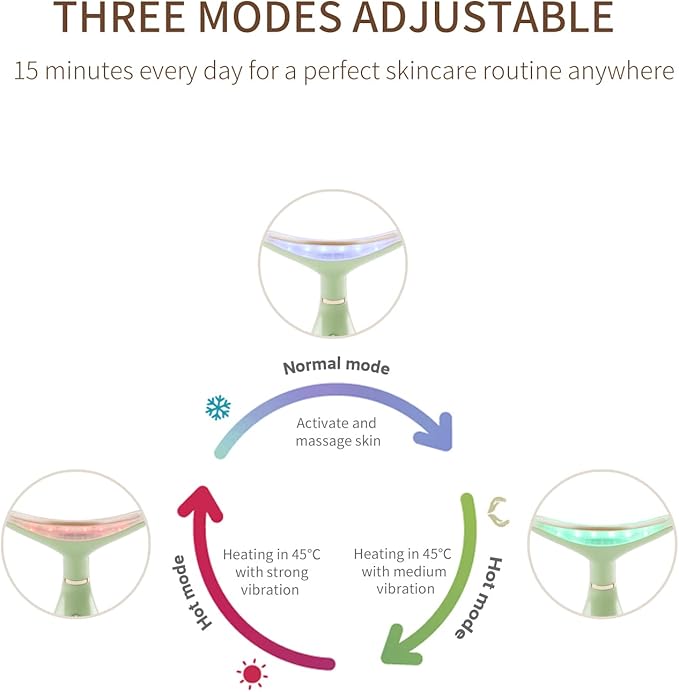 - ✔ 【YOU CAN ADJUST 3 DIFFERENT MODES】Skin care face massager has 3 massage modes for you to choose from. Mode 1 is gentle vibration with normal temperature, mode 2 is medium vibration with heat, and mode 3 is strong vibration with heat, which makes you feel pampered after a long workday, providing you with a simple and comfortable skin care experience every day.