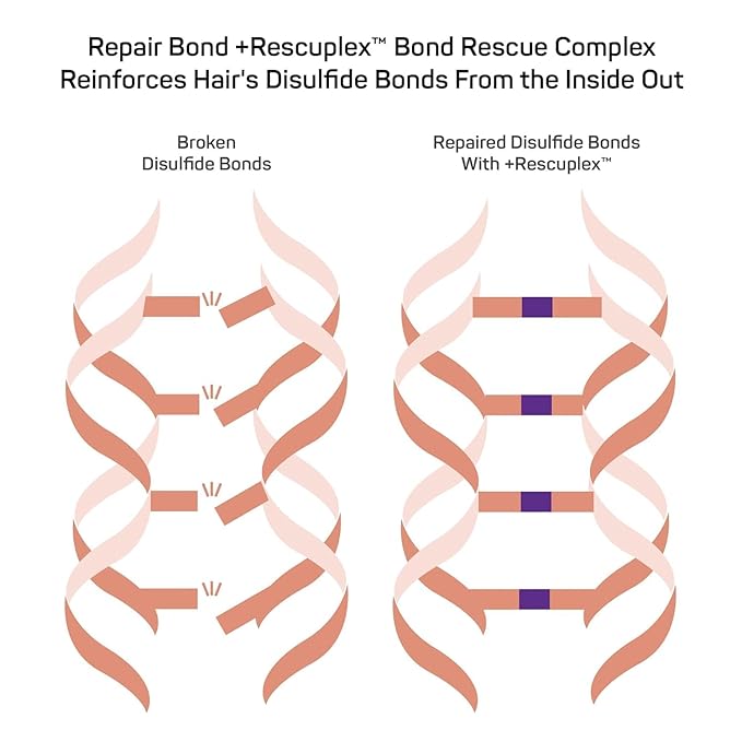 - Stay Strong: The Repair Bond system is formulated with Rescuplex, a complex developed to rebuild and maintain hairβs damaged bonds, including disulfide bonds. Designed with added ingredients like rice bran oil, rosemary oil, hydrolyzed quinoa and vitamin C, the Repair Bond +Rescuplex system is proven to result in hair that feels 111% stronger, 140% smoother and with 129% more shine.