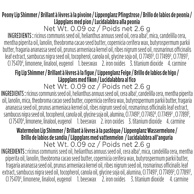 - BEAUTY GIFT SET: Pamper someone you love with a touch of luminescent color with Burt’s Bees Lip Shimmer for a natural everyday look in 3 flattering shades of Peony, Fig and Rhubarb