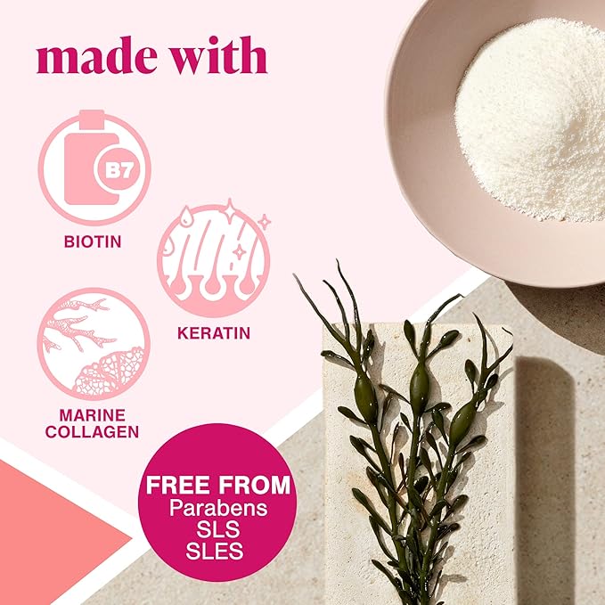 - Includes a proprietary complex containing clinically tested ingredients derived from natural sources, such as biotin, keratin and seaweed extract