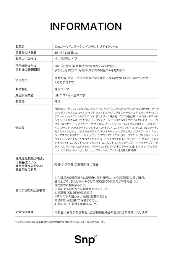 - Active Ingredients : 24K gold, collagen, vitaminA, Vitamin B3