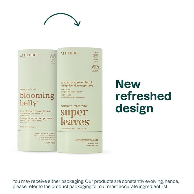 ATTITUDE Plastic-Free Pregnancy Stretch Mark Prevention Oil, EWG Verified, Dermatologically Tested, Plant and Mineral-Based, Vegan Maternity Products, Pink Argan, 3 Ounces