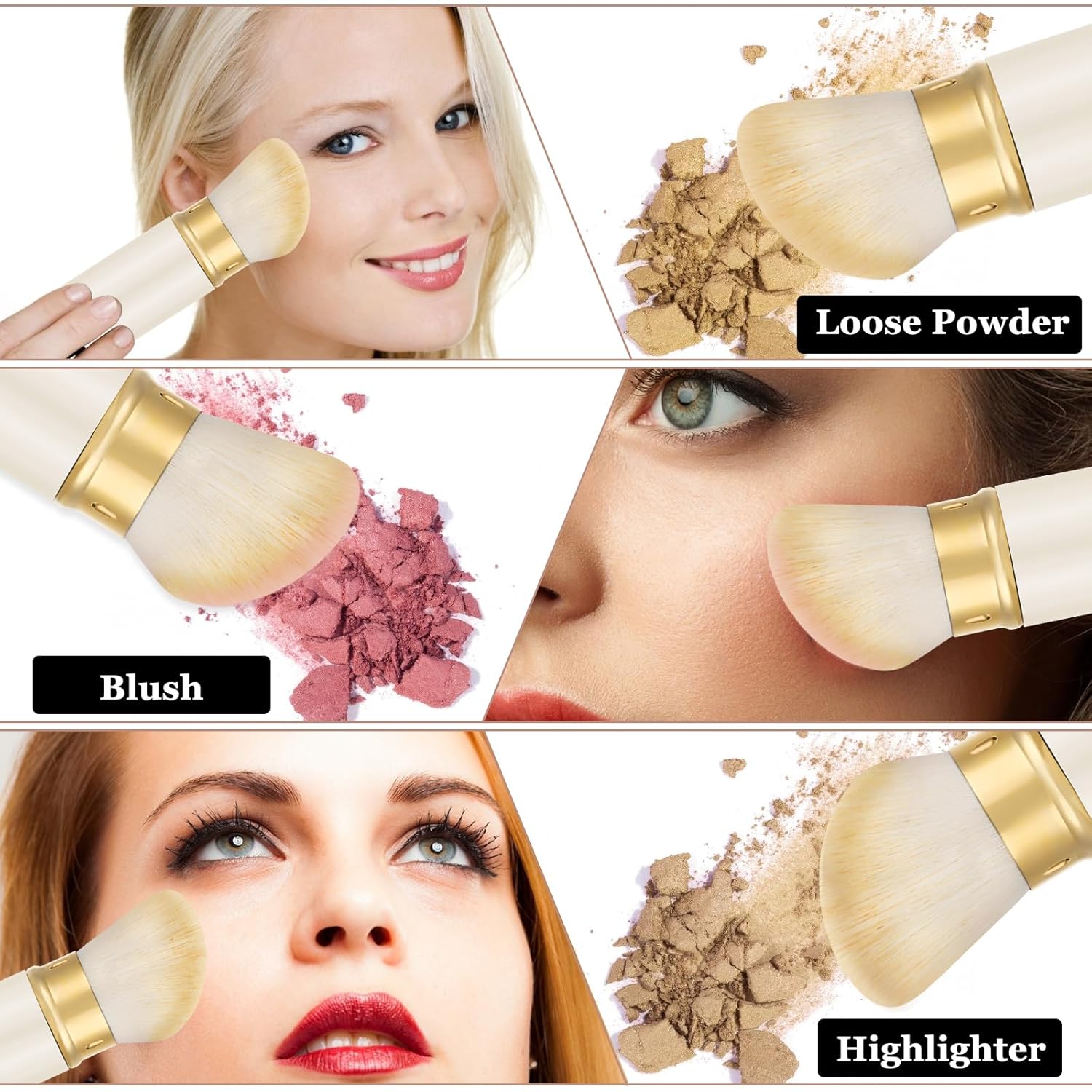 - γSoft and Silky Brush Hairγ The angled kabuki foundation brush made with high quality synthetic fibers, super soft, perfect for blending Liquid foundation , sunscreen, blush, cream, self tanner, buffing, stippling, concealer, bronzer, loose powder cosmetics or nail dust. allows you to tap on products for flawless, air-touched, full-coverage finish, don't absorb foundation into the brush itself.