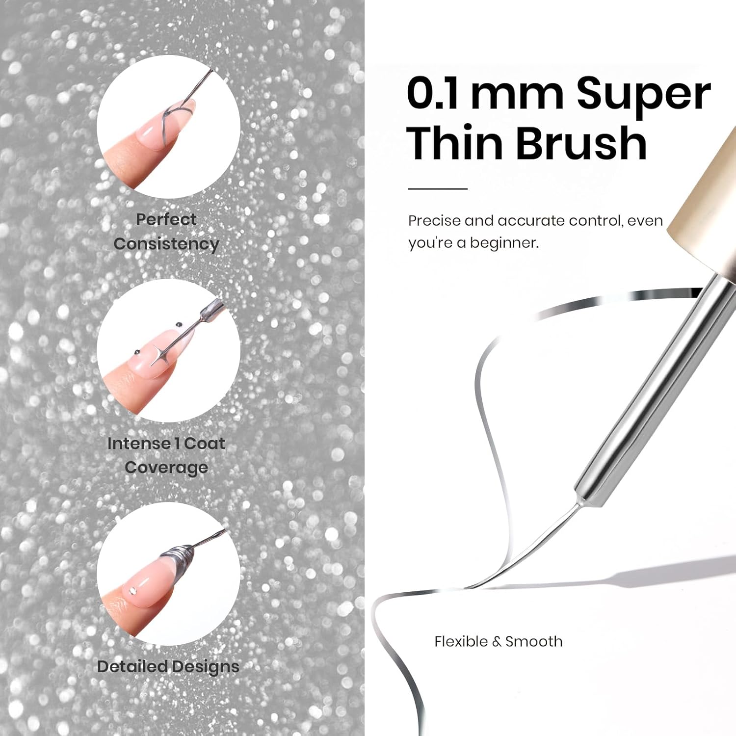 - 【Built-in Thin Brush】Each bottle has a thin pen brush, no need to change and wash clean the drawing liner pen brush when doing the nail art.The brush is soft and slender, with good resilience, which can draw fine lines, change angles, and paint various curves at will, and operate smoothly.