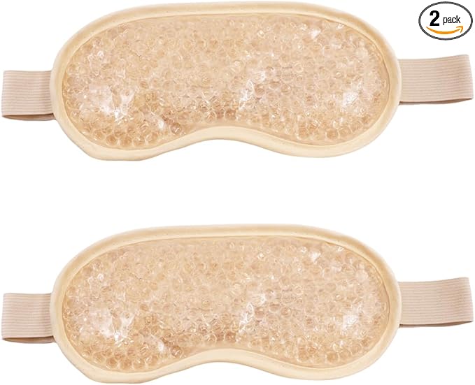 Gel Eye Mask, Cooling Eye Pads Reusable Small Ice Pack Under Eye Patches, Eye Hot Cold Treatment Pack for Redness, Pain Relief and Eye Relax (Champagne - 2count)