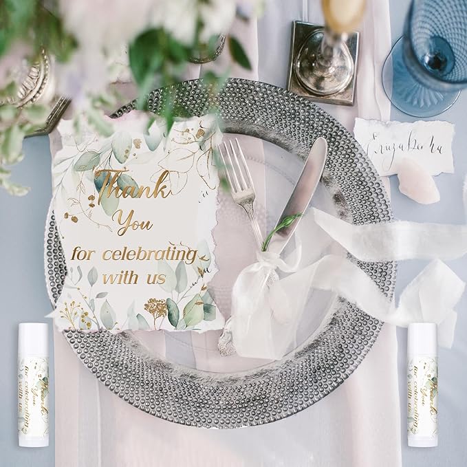 Dunzy 50 Pcs Thank You Gift Lip Balm Bulk Baby Shower Party Favors Bridal Shower Favor Lip Care with Assorted Fruit Flavors Thank You Lipstick for Guest Basket Gift Stuffer (Eucalyptus)