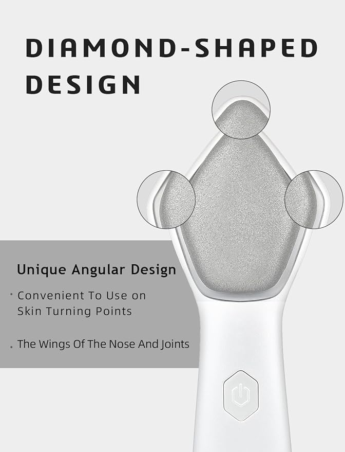 - 3 Levels Frequency:There 3 levels frequency for different skin conditions, which can be used on the skin of the face, neck, back, hands, legs, abdomen, knees, elbows and other parts of the body. In addition, the unique diamond shape design is convenient for use on the nose, joints and other skin turning points. Suitable for oily, sensitive, mature, combination and dry skin types